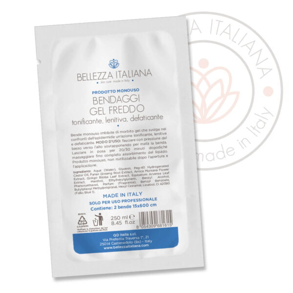 Bende monouso imbibite di morbito gel che svolge nei confronti dell’epidermide un’azione tonificante, lenitiva e defaticante.